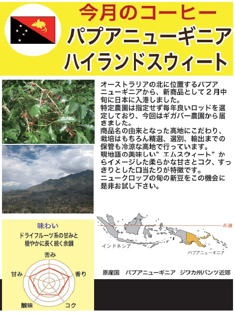 ☕11月のコーヒーは「パプアニューギニア・ハイランドスィート」です。