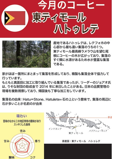 12月のコーヒーは「東ティモール ハトゥレテ」です